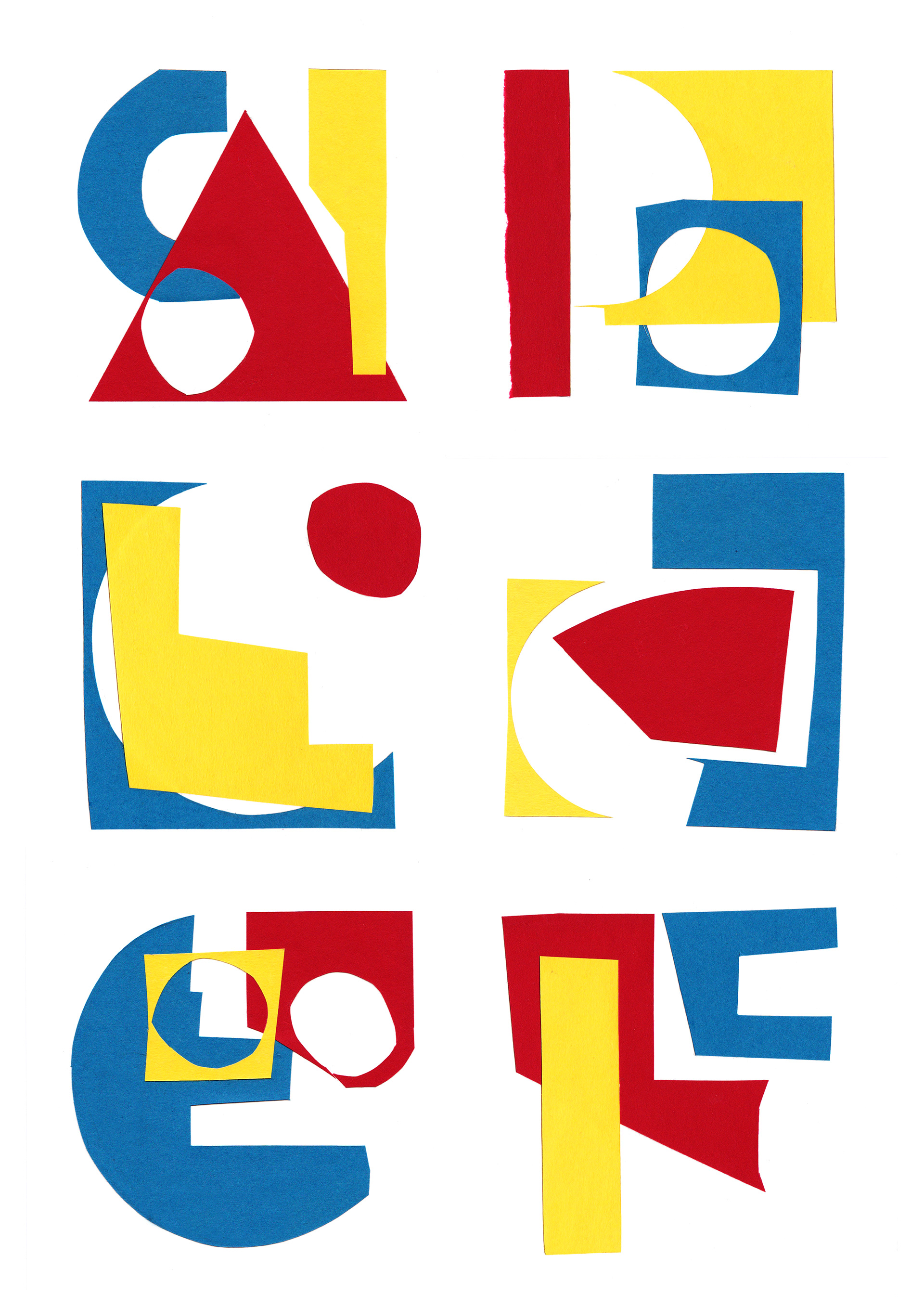 Paper collages exploring the abstract form of letters. This series evolved into a limited edition run of Riso prints.